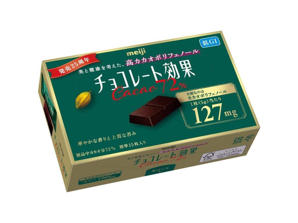 「チョコレート効果 72」などの高カカオ製品は、比較的に糖質が少なく、甘さも控えめなので、ダイエット中のおやつに適しています。少量で満足感が得られるため、間食に撥取することで暴食を防ぐ効果も期待できます。