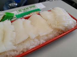 東京駅で見かけたえんがわ押し寿司は、断面が整っていてとても美しく、見た瞬間に「これは美味しいに違いない」と感じました。